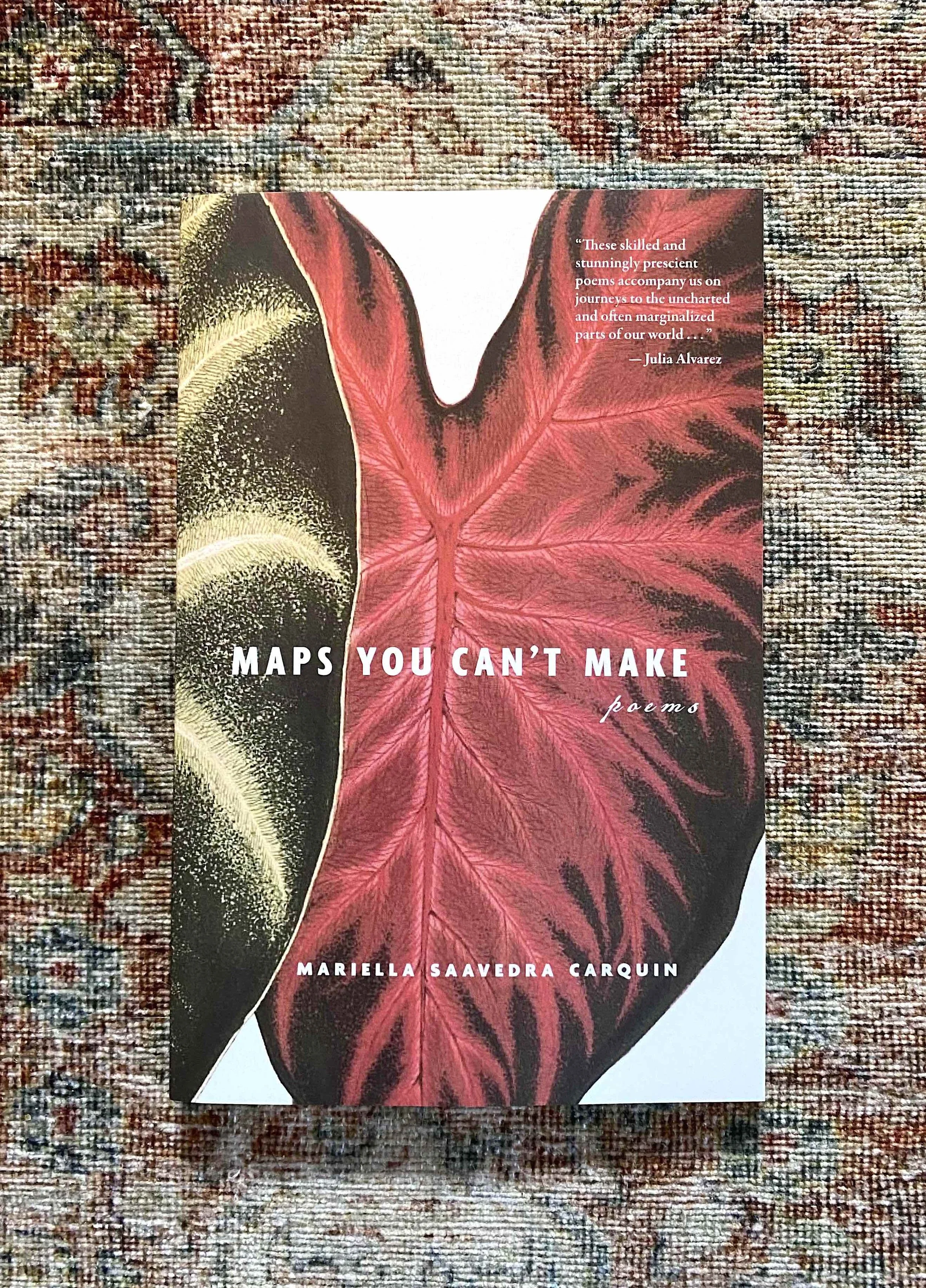 “Ruby Sales, civil rights activist, once explained that when she walks into a conflict situation where voices are loud with anger and violence is imminent, the first thing she asks is, ‘Where does it hurt?’ The poems in Mariella Saavedra Carquin’s Maps You Can’t Make ask that question and explore those hurting places both internally in each of us and externally in the world, spaces where healing and wholeness need to happen. Saavedra Carquin’s voice is both bold and tender, lyrical and penetrating. Here is a poet who does not turn away from what needs to be seen and named in order to be transformed. These skilled and stunningly prescient poems accompany us on journeys to the uncharted and often marginalized parts of our world, refusing the perch of privilege of the one who glibly knows. We are in discovery mode, unafraid because we have her words to hold and the promise that there are rerootings but only if we acknowledge the uprootings of loss and exile, identities, loved ones and homes. The ending of her poem ‘We Carry It’ fittingly describes what this collection accomplishes: each poem bursts us open and empties its glitter over everything. Even without a map, we know a way forward.”